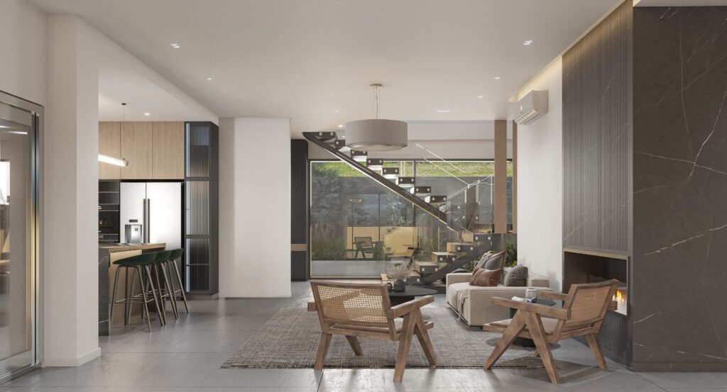 This three-story villa, located in Marzanabad in northern Iran, was designed for a client with a refined and luxurious lifestyle. As a jewelry entrepreneur, the client desired an interior that expressed sophistication and exclusivity, while still preserving the relaxed and open atmosphere of a vacation retreat.